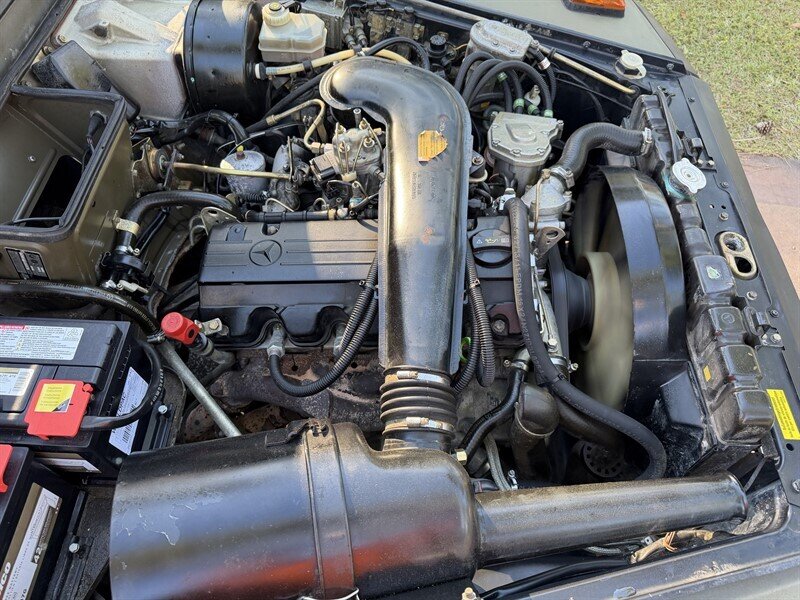 Power comes from the proven Mercedes-Benz M102 2.3L inline-4, known for its reliability, simplicity, and ease of service. A 4-speed automatic transmission feeds a 2-speed transfer case with high and low range, while a manual rear differential locker provides added traction when conditions demand it. With a towing capacity of approximately 4,400 lbs, this Geländewagen is as functional as it is iconic.